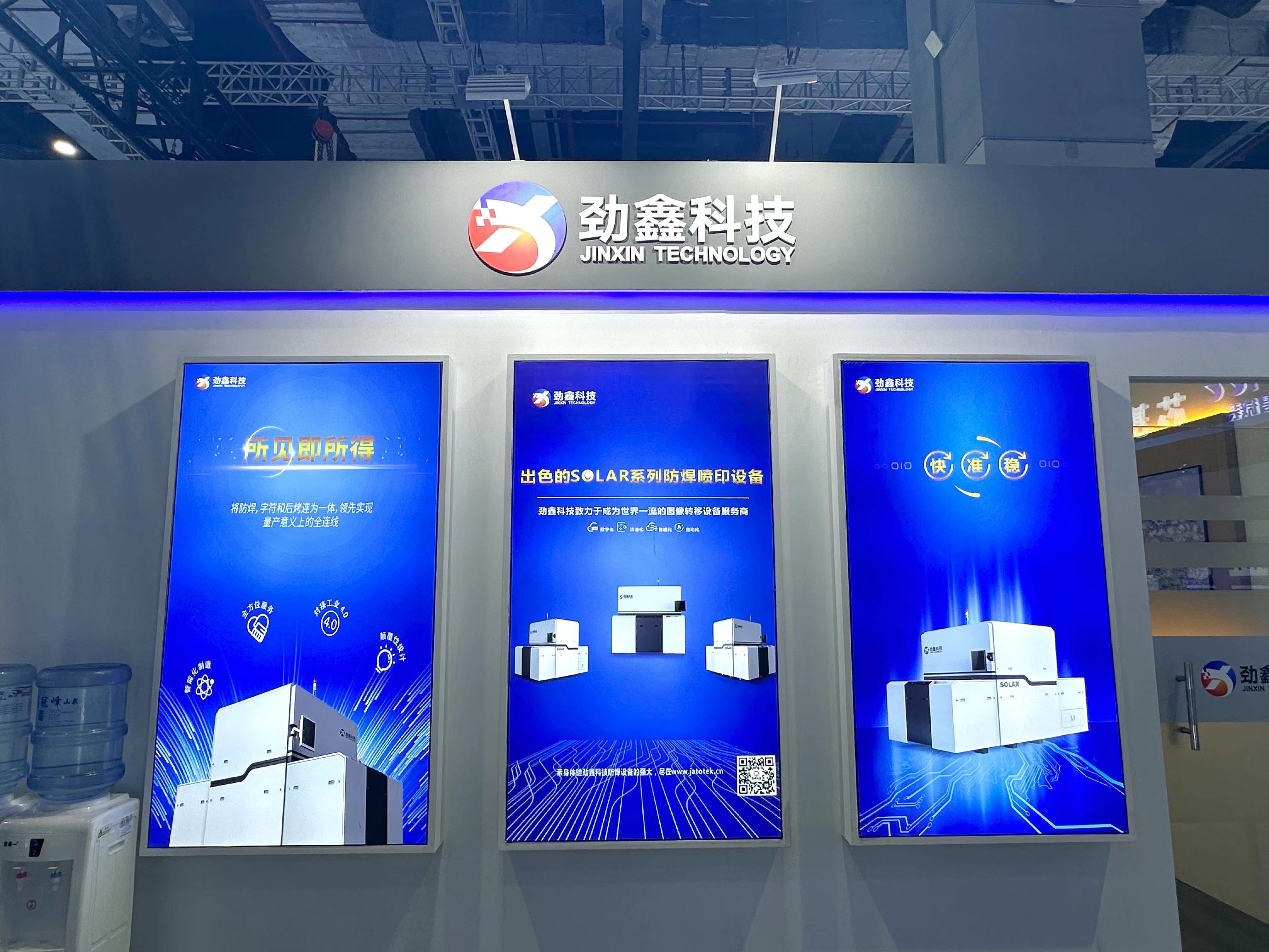 展會現場如火如荼,精彩紛呈。此次勁鑫科技展出的Solar-K09P是一款具有突破意義的量產型防焊數字化設備,省去了絲印、預烤、曝光、顯影等工序,節省人力物力,使防焊生產變得高效、節能、環保。